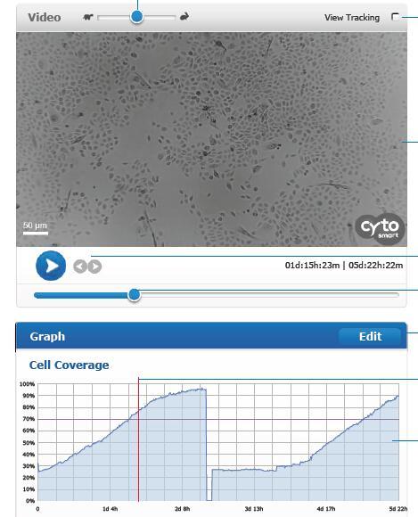 CytoSMART™ Connect Cloud服務(wù)存儲細胞培養(yǎng)的圖像和視頻,之后可隨時供你下載(jpg圖像或avi視頻)。此外,細胞匯合度和溫度也被記錄下來。這兩組數(shù)據(jù)可在電腦上查看,或以csv的文件下載,便于進一步的處理。你還可以設(shè)置匯合度的警報,也就是說,當細胞培養(yǎng)物到達某一匯合度時,你將收到自動通知。