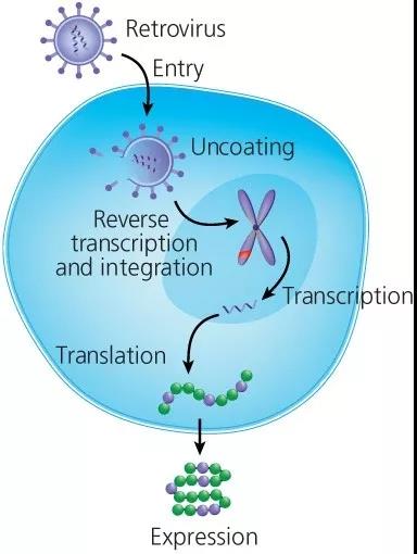 2、遺傳修飾 通過對T細胞遺傳修飾表達CAR,其被重新定向至一特定的靶點。目前,最常用的遺傳修飾T細胞的方法是使用病毒(比如γ-逆轉錄病毒或慢病毒)的載體,這些工程化載體可以攜帶CAR構建體9。簡言之,T細胞被激活,然后用可將其攜帶的物質釋放進細胞的病毒顆粒進行轉導,從而導致CAR構建體插入轉導的T細胞基因組里(圖2)。最近,Li等人發表了關于使用EasySepTM分離的T細胞的γ-逆轉錄病毒的產生和T細胞轉導的完整方案10。