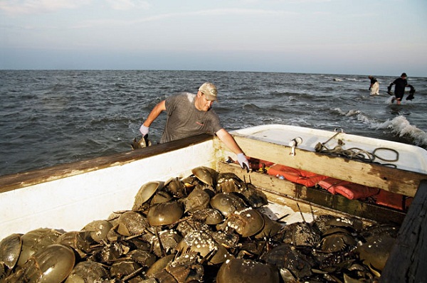 你可能曾被鱟血救過。在十九世紀五十年代,科學家們在鱟的灰藍色血液中發現了一種凝血劑,稱為鱟試劑(Limulus amoebocyte lysate,LAL),它可以與菌類、內毒素類物質發生反應,并在這些入侵物周圍凝結出一層厚厚的凝膠。結果顯而易見:它是一種檢測藥品和醫療用品中是否含有雜質的既簡單又萬無一失的方法。目前,美國食品及藥物管理局(FDA)一共準許了五家公司生產和銷售鱟試劑,美國制藥企業Charles River便是其一。他們將鱟的血液提取出來并制成試劑,能夠檢測出含量低至萬億分之一的細菌和其他污染物,值得一提的是鱟并不會因為血液提取而死去。 1.抓捕