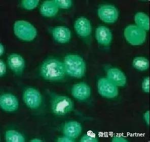 2.     熒光染色法。將細胞接種于蓋玻片上,在細胞未長滿前取出玻片,用不含酚紅的Hank's液漂洗后,再用1:3醋酸甲醇固定10min,然后用生理鹽水漂洗,置于用生理鹽水配制的 Hoechst 33258(濃度為50ul/ml)中染色10min,熒光染料將支原體內的DNA著色,染色后用蒸餾水洗1~2min,滴加pH5.5磷酸緩沖液數滴,然后置熒光顯微鏡下觀察。鏡下散于細胞周圍或附于細胞膜表面的亮綠色小點為支原體。