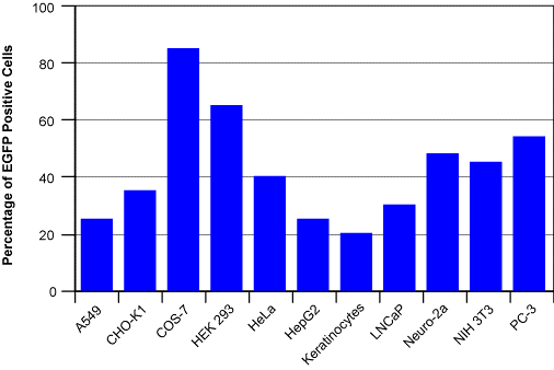 廣譜、低毒的 DNA 轉(zhuǎn)染試劑 特性 · 性能與 FuGENE® 6 試劑相當(dāng),但成本更低廉。 · 廣譜 DNA 傳遞 - 一種轉(zhuǎn)染試劑和實驗方案,可用于各種細胞。 · 低細胞毒性 - 維持細胞密度并減少實驗偏差。 · 高效遞送 - 在大量細胞中實現(xiàn)表達以獲得實驗成功。 · 傳遞單個或多個質(zhì)粒 - 適用于許多應(yīng)用,如基因表達、siRNA/shRNA 表達、病毒生產(chǎn)和啟動子分析。 · 提供免費樣品 描述 · TransIT®-LT (低毒性)轉(zhuǎn)染試劑為通過轉(zhuǎn)染細胞內(nèi)遞送 DNA 提供了明顯的優(yōu)勢,包括易用性,轉(zhuǎn)染重現(xiàn)性和最先進的轉(zhuǎn)染效率以及顯著降低的細胞損傷水平。此外,使用 TransIT®-LT1 進行轉(zhuǎn)染不需要更換培養(yǎng)基,可以在含有血清的培養(yǎng)基中進行。這種獨特的特性組合使這些轉(zhuǎn)染試劑成為所有基因表達研究的理想選擇,其中細胞轉(zhuǎn)染后的狀態(tài)都很重要。 TransIT®-LT1 試劑能高效地將 DNA 傳遞到多種細胞系。
