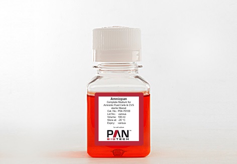 Amniopan is a complete medium (ready-to-use) for the cultivation of human fetal cells from amniotic fluid and chorion villi biopsy samples. It is suitable for a rapid expansion of amniotic cells in order to investigate chromosomal disorders.