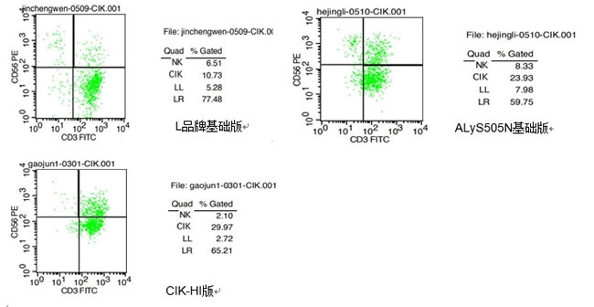 【產(chǎn)品名稱】 ALyS505N 無血清細(xì)胞培養(yǎng)基 ALyS505N 無血清細(xì)胞培養(yǎng)基 【產(chǎn)品概述】 ALyS505N 是專為細(xì)胞免疫治療研究而開發(fā), 不含有任何動(dòng)物蛋白質(zhì)成分,含有重組或醫(yī)療級人類蛋白質(zhì)的無血清細(xì)胞培養(yǎng)基。對人類外周血 T 淋巴細(xì)胞具有高增殖性,適用于 CIK、DC、LAK、CTL 等 T 細(xì)胞的擴(kuò)增與活化,是細(xì)胞免疫治療用最佳培養(yǎng)基。 【產(chǎn)品特點(diǎn)】 1、安全性: 不含動(dòng)物血清成分; 嚴(yán)格通過細(xì)菌、真菌、支原體等測試; 含有重組人類醫(yī)療級蛋白,不含異源性動(dòng)物成分,無細(xì)胞毒性; 2、簡便性:可直接用于細(xì)胞培養(yǎng),無需添加谷氨酰胺及營養(yǎng)物質(zhì); 3、廣泛性:支持 DC、CIK、CTL、LAK、γδT 及 CAR-T 等人類 T 淋巴細(xì)胞在體外擴(kuò)增; 4、高效性: 對外周血 T 淋巴細(xì)胞具有高效增殖性,培養(yǎng)第14 天 3.5~4L 體系可收獲 1.0×1010 個(gè)細(xì)胞; 不使用血漿也可使細(xì)胞在體外增殖,添加2%~5%自體滅活血漿會(huì)使細(xì)胞生長更好; 5、多型號:ALyS505N-0(不含IL-2)、ALyS505N-175(IL-2 175IU/ml)、ALyS505N-7(IL-2 700IU/ml)、ALyS505N-10(IL-2 1000IU/ml); 6、品質(zhì)保證:日本培養(yǎng)基第一品牌,市場占有率高達(dá)60%以上,通過ISO9001質(zhì)量管理體系認(rèn)證。 【培養(yǎng)基參數(shù)】 1、規(guī) 格:1000ml/瓶 2、保存溫度:2℃~8℃ 3、顏 色:橘紅色/紅色 4、有 效 期:12 個(gè)月 5、包裝規(guī)格:12 瓶/箱 6、產(chǎn)品貨號:1020P10(ALyS505N-0) 【培養(yǎng)基理化指標(biāo)】 1、PH 值:7.4±0.2 2、滲 透 壓:290±10mOsm/kg 3、內(nèi) 毒 素:<0.25EU/ml 4、細(xì)菌檢測:陰性 5、真菌檢測:陰性 6、支原體檢測:陰性 【配套Lymactin-T試劑參數(shù)】 1、規(guī) 格:1mg/ml,1ml/支 2、保存溫度:-20℃低溫保存 3、有 效 期:12個(gè)月 4、產(chǎn)品貨號:600101 【Lymactin-T試劑理化指標(biāo)】 1、PH 值:7.4±0.2 2、滲 透 壓:290 ± 10mOsm 3、內(nèi) 毒 素:<0.25EU/ml 4、細(xì)菌檢測:陰性 5、真菌檢測:陰性 6、支原體檢測:陰性 【實(shí)驗(yàn)效果】 1、T細(xì)胞培養(yǎng)